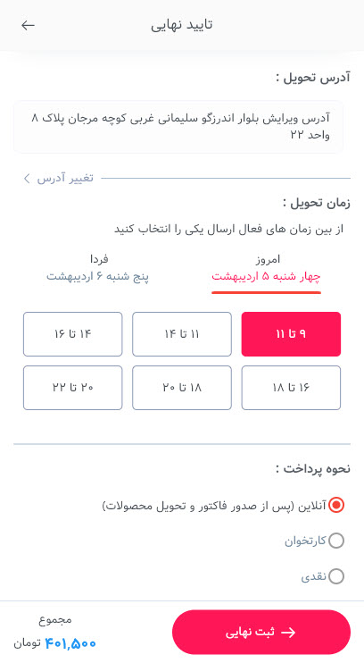 ارسال سفارشات روز بعد و در زمان درخواستی مشتری می باشد.